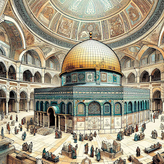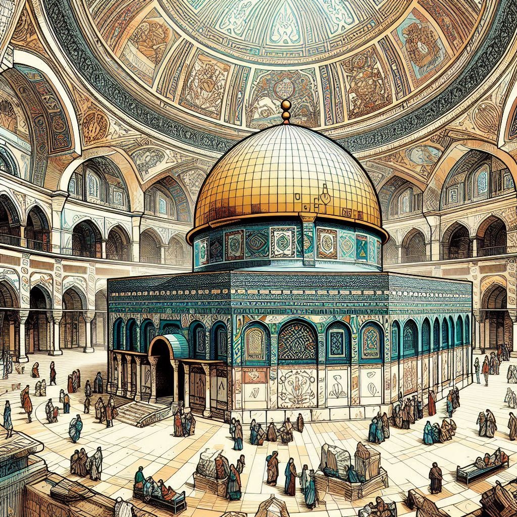 أمر الخليفة الأموي عبد الملك بن مروان (حكمه ٨٦هـ / ٦٨٤ – ٧٠٥م ببناء قبة الصخرة سنة (٦٦ هـ / ٦٨٥م) ، وانتهى البناء سنة ( ٧٢هـ / ٦٩٢م ) (۲)، كرمز المعجزة الإسراء والمعراج، فكانت معجزته الباقية إلى يومنا هذا تقارع الزمن شاهدة على العصور العربية والإسلامية التي مضت، فهي تمثل ولادة مجموعة فنون عربية، تأتي العمارة في مقدمتها والزخرفة في مصاحبتها للعمارة، بدأت بما هو معروف من فن الفسيفساء قامت على خبرة الصناع المحليين في ثلاثة اتجاهات الأول منها في الرسوم الجدارية.